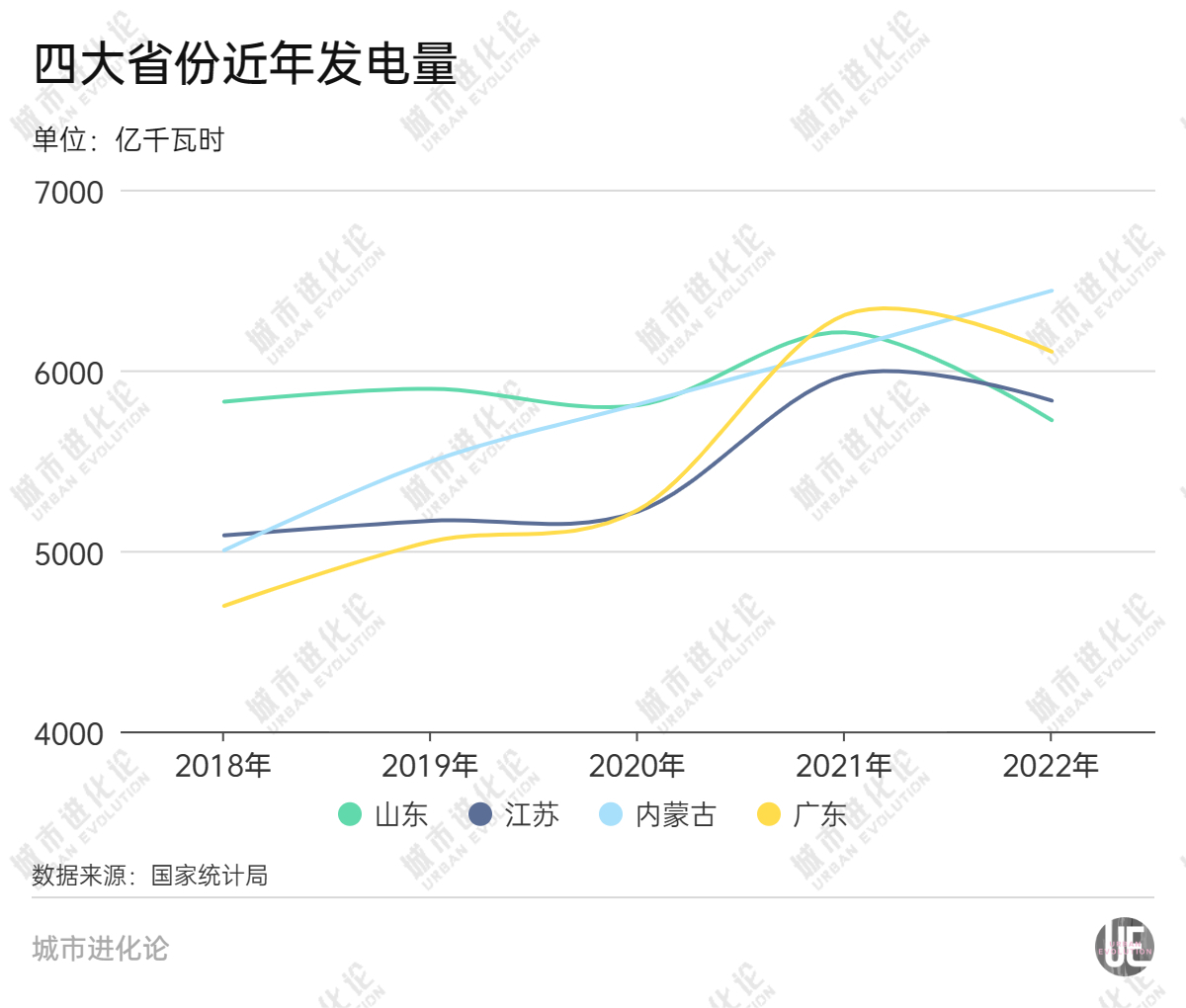 此后兩年,山東發(fā)電量又先后被廣東、江蘇超過,退居全國第四。