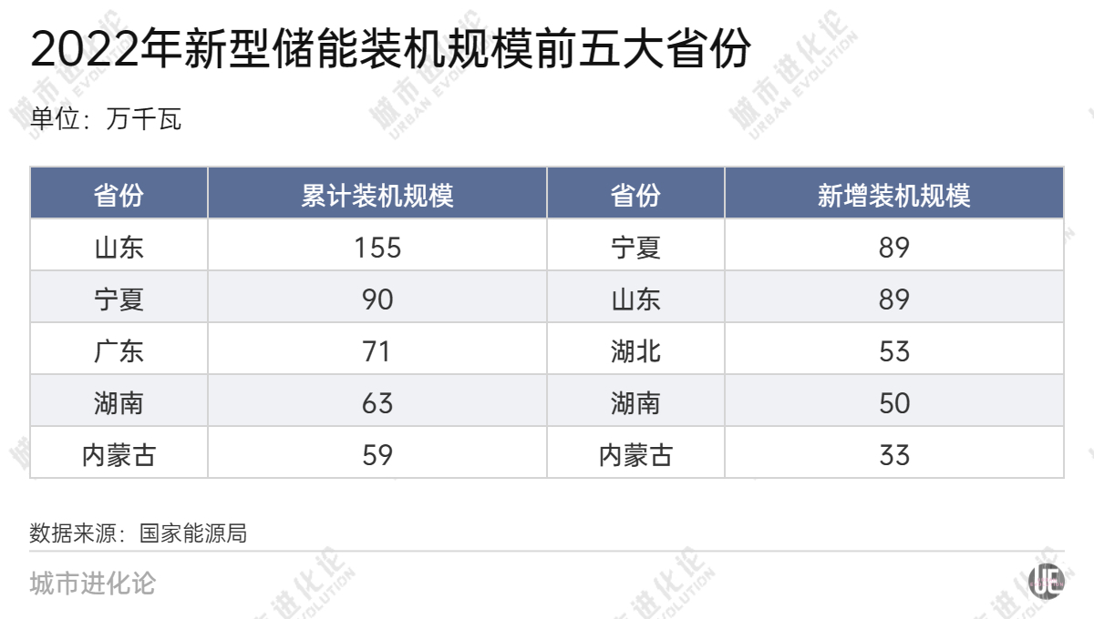 可以看到,累計裝機規(guī)模僅次于山東的寧夏,去年新增規(guī)模已與山東旗鼓相當。按照當?shù)匾?guī)劃,到2025年,寧夏力爭新型儲能裝機規(guī)模達到500萬千瓦以上,山東則為“達到500萬千瓦左右”。
