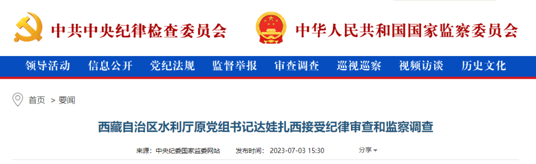 中央紀(jì)委國(guó)家監(jiān)委網(wǎng)站7月3日消息,據(jù)西藏自治區(qū)紀(jì)委監(jiān)委消息:西藏自治區(qū)水利廳原黨組書(shū)記達(dá)娃扎西涉嫌嚴(yán)重違紀(jì)違法,目前正接受西藏自治區(qū)紀(jì)委監(jiān)委紀(jì)律審查和監(jiān)察調(diào)查。