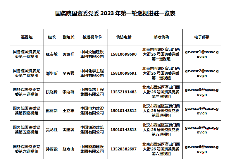 按照國(guó)務(wù)院國(guó)資委黨委和巡視工作領(lǐng)導(dǎo)小組部署安排,7月17日至19日,國(guó)資委黨委6個(gè)巡視組分別進(jìn)駐中國(guó)交通建設(shè)集團(tuán)有限公司、中國(guó)化學(xué)工程集團(tuán)有限公司、中國(guó)鐵路工程集團(tuán)有限公司、中國(guó)電力建設(shè)集團(tuán)有限公司、中國(guó)鐵道建筑集團(tuán)有限公司、中國(guó)能源建設(shè)集團(tuán)有限公司等6家委管中央企業(yè)黨委開展常規(guī)巡視。各巡視組分別召開巡視進(jìn)駐動(dòng)員會(huì),各巡視組組長(zhǎng)作動(dòng)員講話,被巡視企業(yè)黨委主要負(fù)責(zé)人作表態(tài)發(fā)言。