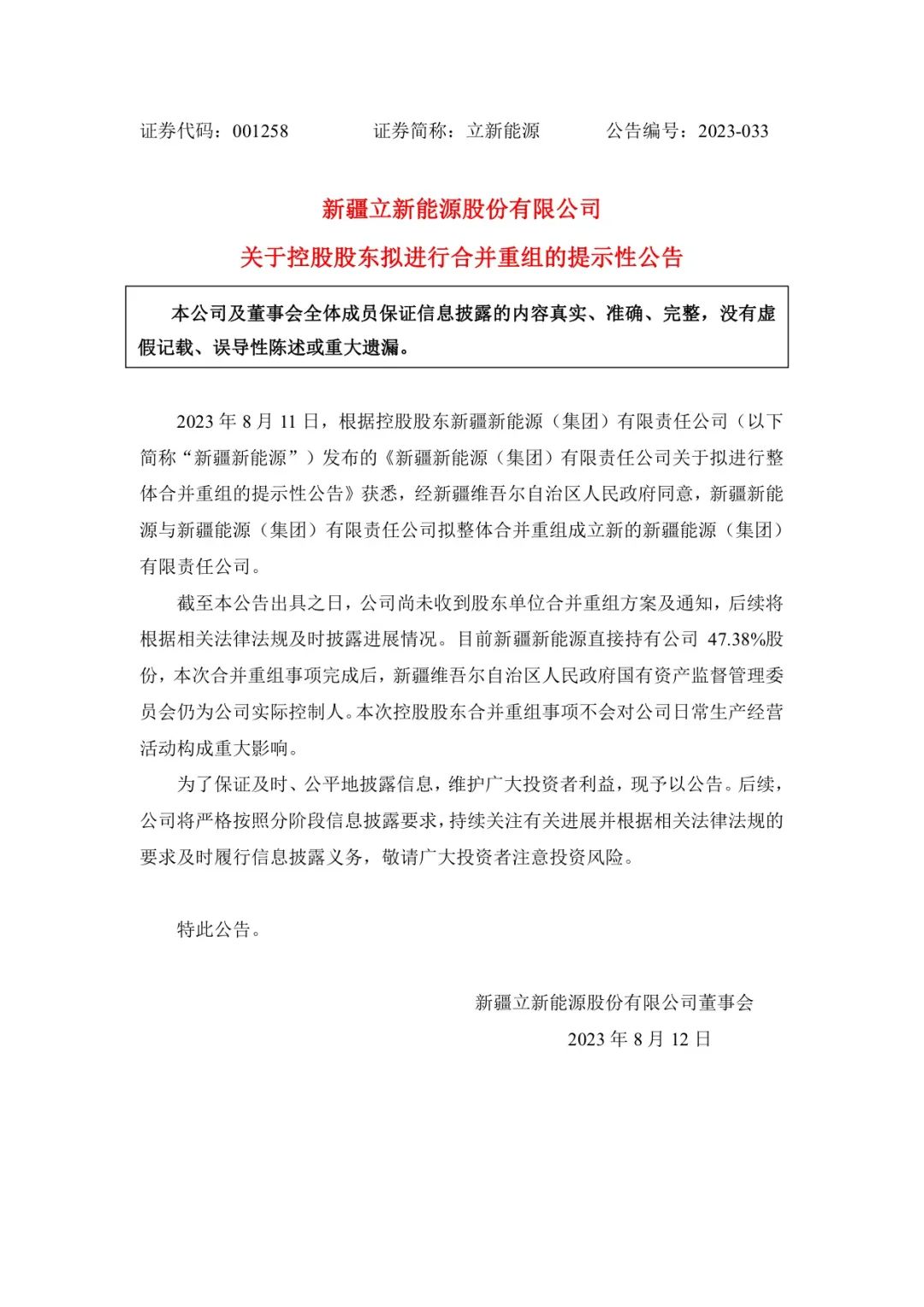 立新能源稱,截至公告出具之日,公司尚未收到股東單位合并重組方案及通知,后續(xù)將根據(jù)相關(guān)法律法規(guī)及時(shí)披露進(jìn)展情況。根據(jù)新疆能源(集團(tuán))有限責(zé)任公司消息: