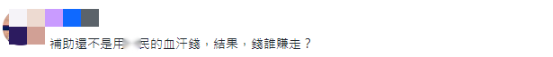 還有島內(nèi)網(wǎng)民表示質(zhì)疑,“補(bǔ)助還不是用民眾的血汗錢,結(jié)果,錢誰賺走?”