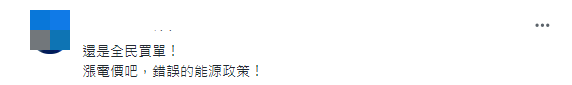 “還是全(臺(tái)灣)民(眾)買單!漲電價(jià)吧,錯(cuò)誤的能源政策!”