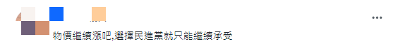 還有島內(nèi)網(wǎng)民評(píng)論道,“物價(jià)繼續(xù)漲吧,選擇民進(jìn)黨就只能繼續(xù)承受”。