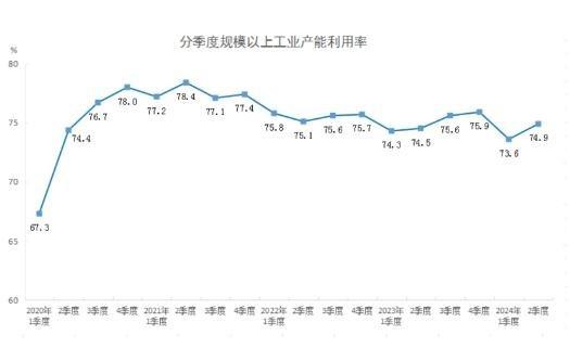 據(jù)國家統(tǒng)計(jì)局網(wǎng)站消息,2024年二季度,全國規(guī)模以上工業(yè)產(chǎn)能利用率為74.9%,比上年同期上升0.4個(gè)百分點(diǎn),比一季度上升1.3個(gè)百分點(diǎn)。