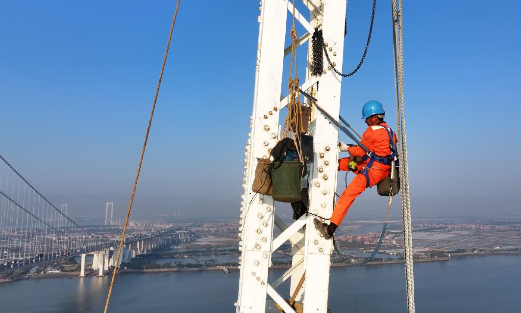 “這是我參與建設(shè)最復(fù)雜、難度最高的大跨越施工。”陳勁松,這位全國(guó)勞動(dòng)模范、南方電網(wǎng)廣東電網(wǎng)能源發(fā)展有限公司送電隊(duì)隊(duì)長(zhǎng)盯著眼前的鐵塔比劃著,新電塔建成后,將提升輸電容量40%,高度將達(dá)到264.5米,刷新國(guó)內(nèi)紀(jì)錄,并增強(qiáng)抵御臺(tái)風(fēng)的能力,為粵港澳大灣區(qū)電力互聯(lián)互通提供更有力的保障。