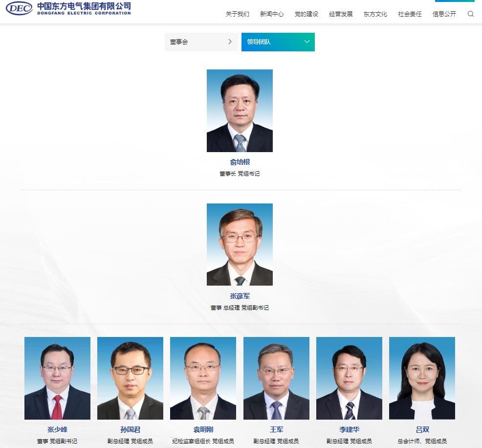 東方電氣集團最新領(lǐng)導(dǎo)層如下: