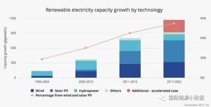 國際能源署發(fā)布2017年可再生能源報(bào)告,確認(rèn)2016年全球新增可再生能源裝機(jī)165吉瓦,其中太陽能光伏裝機(jī)達(dá)到74吉瓦(約46%來自中國),首次超過煤電新增裝機(jī)(57吉瓦)。