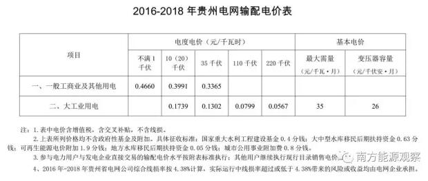 2016年3月7日,國(guó)家發(fā)改委批復(fù)了2016年-2018年貴州電網(wǎng)的輸配電價(jià)(具體如下表)。
