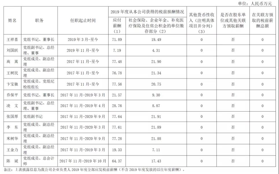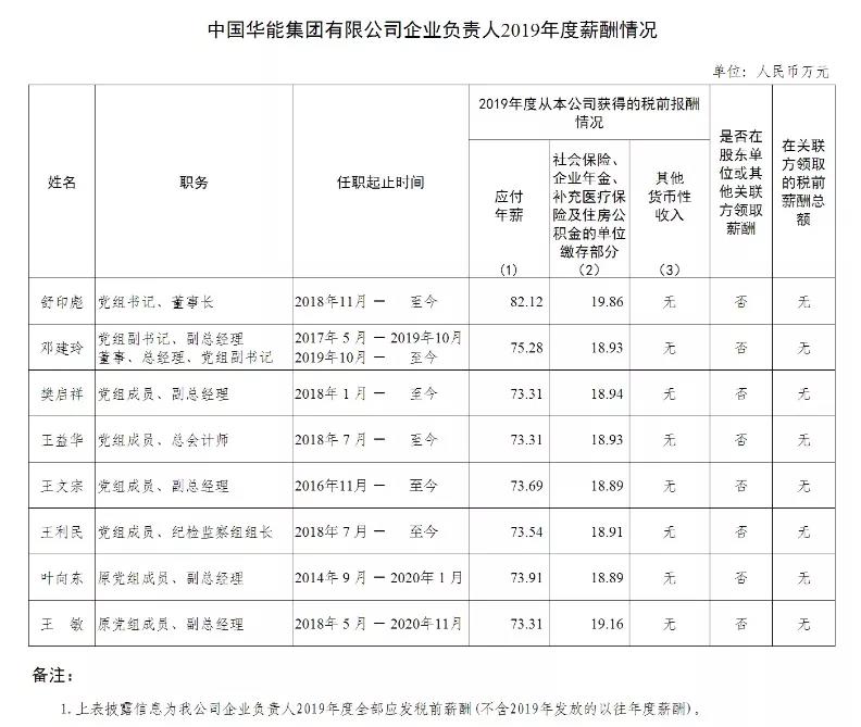 國家電力投資集團有限公司企業(yè)負責人2019年度薪酬情況