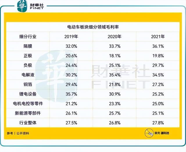 動力電池的成本構(gòu)成是——正極40%,負極15%,隔膜20%,電解液15%,從成本端來看,隔膜并不是最高的,但是依然選擇恩捷股份(002812.SZ)的原因一是恩捷股份的市占率較高,寡頭效應明顯;二是,隔膜行業(yè)的毛利率較高,如下所示。