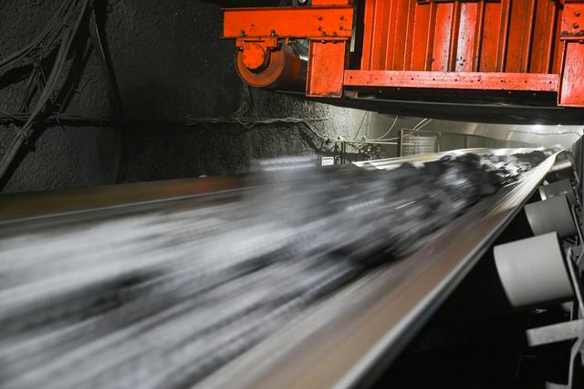 7月8日,大唐龍王溝煤礦采挖的煤炭經(jīng)傳送帶運(yùn)往地面儲煤裝置。