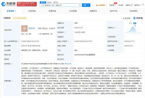 天眼查App顯示,一米八海洋科技(浙江)有限公司的法定代表人為鄧中華,注冊(cè)資本1.1億人民幣,經(jīng)營(yíng)范圍包括水產(chǎn)養(yǎng)殖、食品銷售、水產(chǎn)品冷凍加工、輸電供電、海上風(fēng)電相關(guān)系統(tǒng)研發(fā)、儲(chǔ)能技術(shù)服務(wù)等。