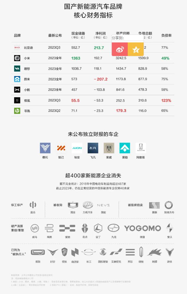 就是過(guò)去五年來(lái),內(nèi)卷加速“品牌淘汰”,大批造車(chē)企業(yè)消亡。據(jù)不完全統(tǒng)計(jì)僅在2018年-2023年五年間,銷聲匿跡的國(guó)產(chǎn)新能源品牌就超過(guò)400家,新能源這場(chǎng)大逃殺的淘汰了高達(dá)90%。而細(xì)細(xì)分析,這400多家品牌或多或少有著一些共性:小品牌、高負(fù)債、靠資本輸血、資金實(shí)力差。