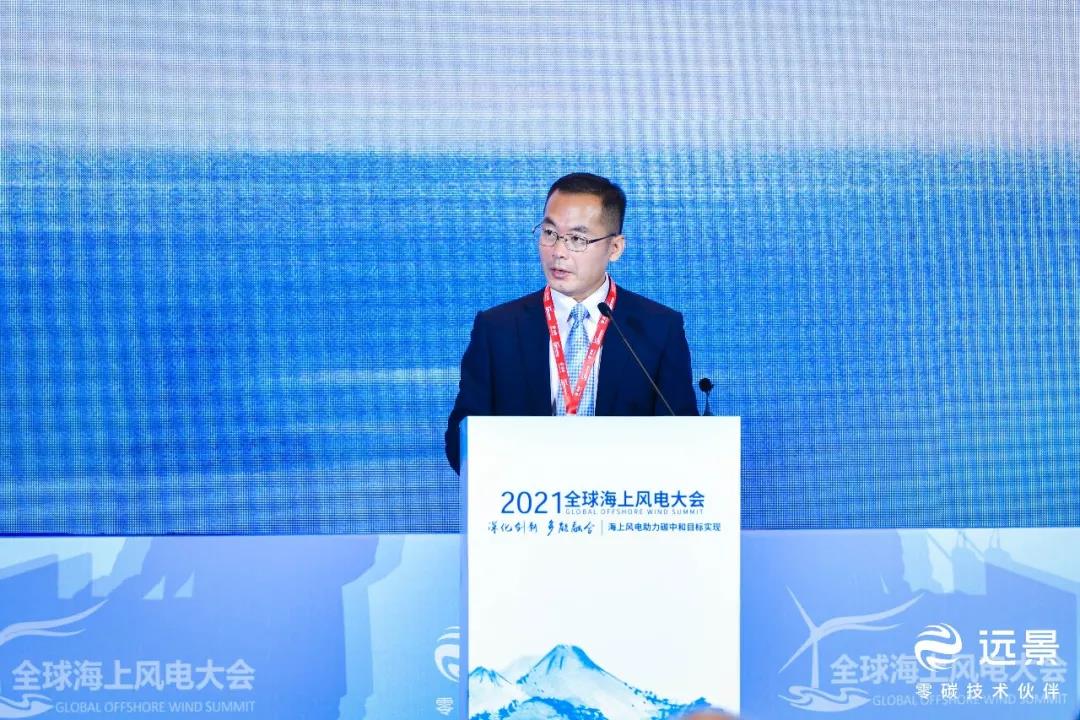 遠景能源高級副總裁田慶軍在大會開幕式上發(fā)表演講。田慶軍認為,中國海上風電潛力巨大,3-5年內中國所有海域基本都可以實現(xiàn)平價,是沿海經(jīng)濟發(fā)達地區(qū)實現(xiàn)碳中和的必然選擇。