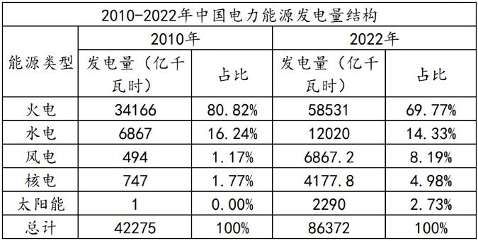 雖然當(dāng)前我國的電力能源結(jié)構(gòu)仍以火電為主,但是根據(jù)國家統(tǒng)計(jì)局?jǐn)?shù)據(jù),2022年火力發(fā)電量83886億千瓦時(shí),市場(chǎng)份額降至69.77%,歷史性跌破70%。其次,水電、風(fēng)電、核電、太陽能的發(fā)電量占比分別為14.33%、8.19%、4.98%和2.73%。非化石能源發(fā)電量占比約為30%,可再生能源發(fā)電量為2.12萬億千瓦時(shí)。目前的電力能源結(jié)構(gòu)距離規(guī)劃目標(biāo)仍有一段距離,要實(shí)現(xiàn)既定目標(biāo),從政策層面來看清潔能源依舊是政策所指,大勢(shì)所趨。