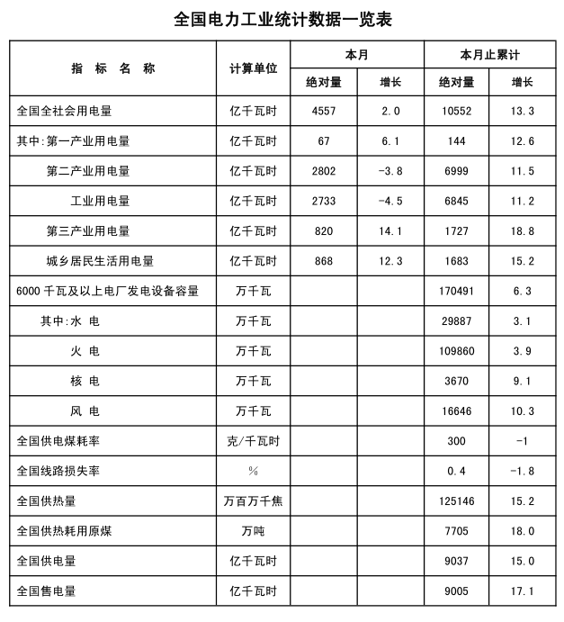 注:全社會用電量指標是全口徑數(shù)據(jù)。