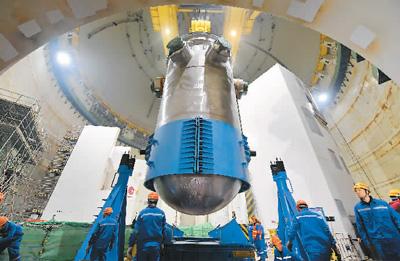 1月28日,華龍一號全球首堆、中核集團福清核電5號機組反應堆壓力容器順利吊裝。林善傳攝(新華社發(fā))