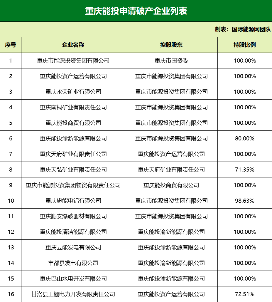 經(jīng)查詢,除重慶能投外,其他15家公司均為重慶能投控股子公司,涉及資產(chǎn)百億,員工數(shù)萬(wàn)人。