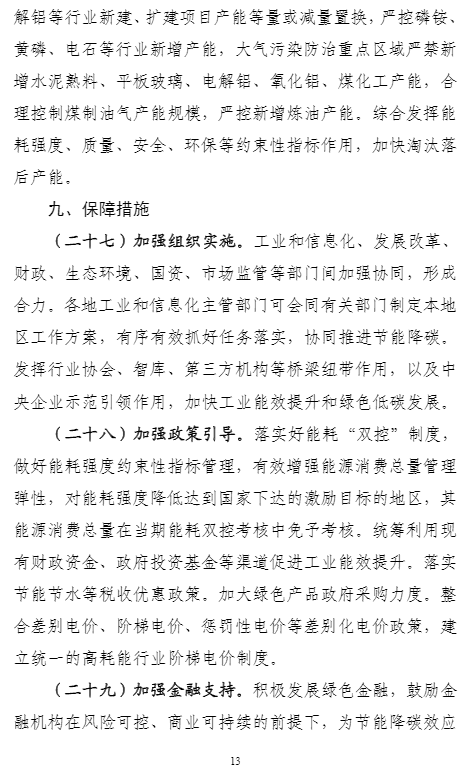 工業(yè)和信息化部等六部門關(guān)于印發(fā)工業(yè)能效提升行動計劃的通知