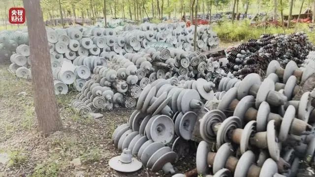 絕緣子是電力線路安全運營的重要保障之一,起著非常關(guān)鍵的絕緣作用。在河北河間市西舊館村,樹林里道路兩旁堆放著一堆堆絕緣子,金屬表面有明顯被腐蝕的痕跡,有的甚至銹跡斑斑。