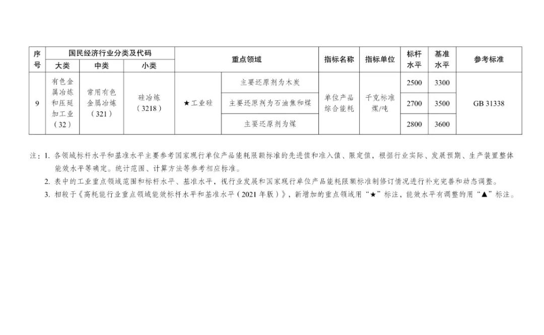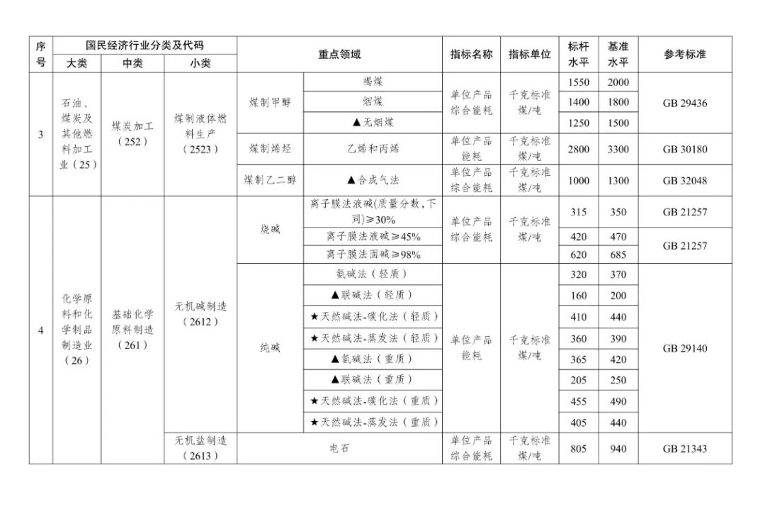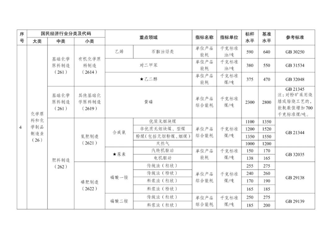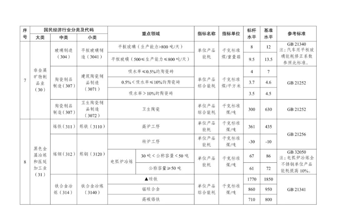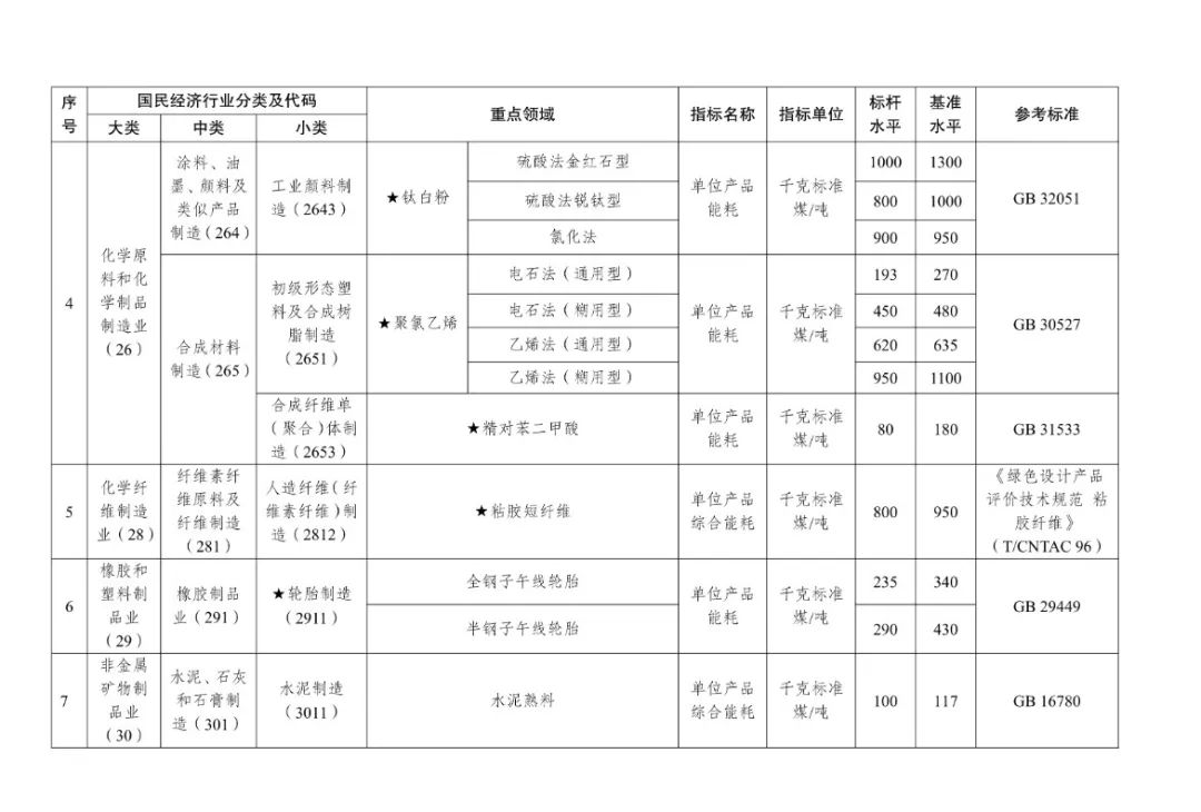 結(jié)合工業(yè)重點領(lǐng)域產(chǎn)品能耗、規(guī)模體量、技術(shù)現(xiàn)狀和改造潛力等,進一步拓展能效約束領(lǐng)域。在此前明確煉油、煤制焦炭、煤制甲醇、煤制烯烴、煤制乙二醇、燒堿、純堿、電石、乙烯、對二甲苯、黃磷、合成氨、磷酸一銨、磷酸二銨、水泥熟料、平板玻璃、建筑陶瓷、衛(wèi)生陶瓷、煉鐵、煉鋼、鐵合金冶煉、銅冶煉、鉛冶煉、鋅冶煉、電解鋁等25個重點領(lǐng)域能效標桿水平和基準水平的基礎(chǔ)上,增加乙二醇,尿素,鈦白粉,聚氯乙烯,精對苯二甲酸,子午線輪胎,工業(yè)硅,衛(wèi)生紙原紙、紙巾原紙,棉、化纖及混紡機織物,針織物、紗線,粘膠短纖維等11個領(lǐng)域,進一步擴大工業(yè)重點領(lǐng)域節(jié)能降碳改造升級范圍。