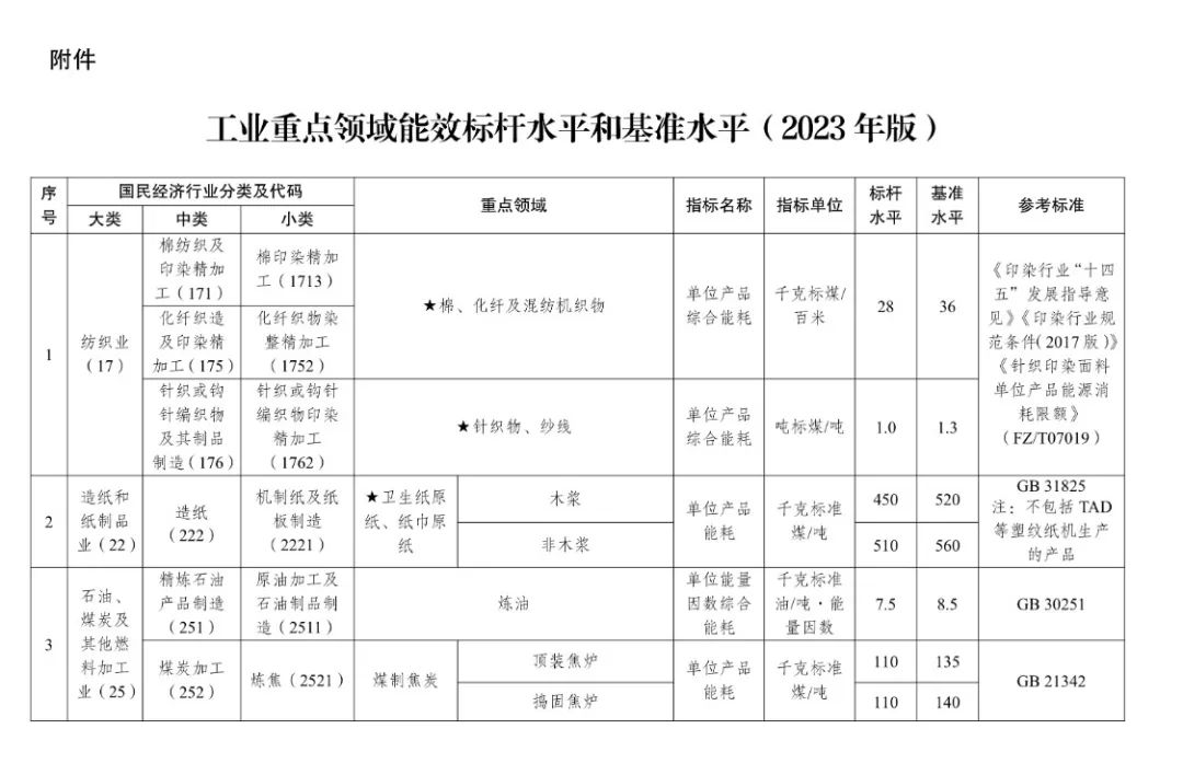 附件:工業(yè)重點領(lǐng)域能效標桿水平和基準水平(2023年版)
