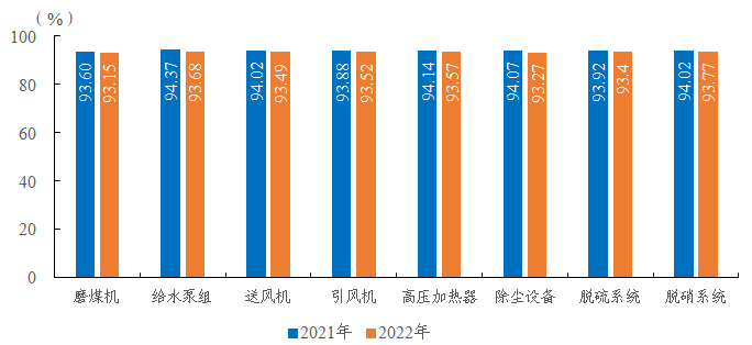 圖3 2021-2022年燃煤機組八類輔助設(shè)備可用系數(shù)