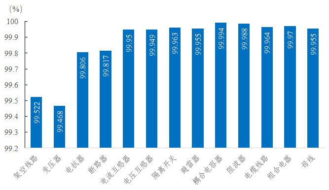 2022年輸變電設(shè)施運行可靠性指標總體位置在較高水平,十三類輸變電設(shè)施的可用系數(shù)保持在99.45%以上,強迫停運率維持在0.3次/百千米(臺、套、段)年以下。