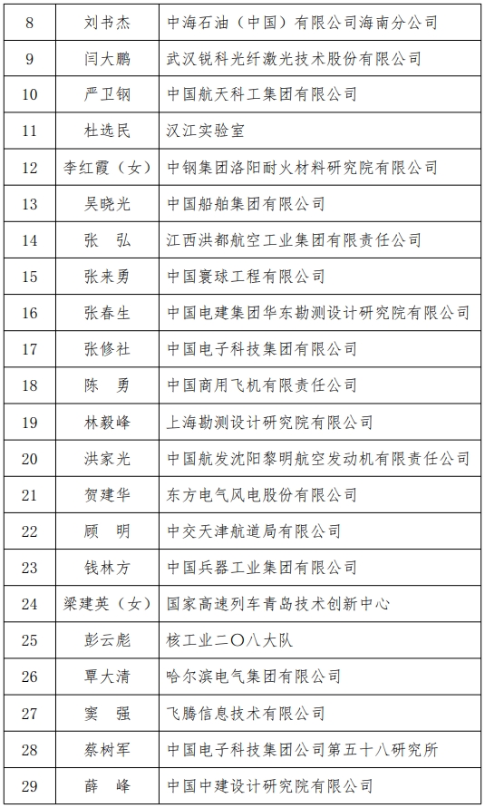 中央企業(yè)29名個(gè)人、20個(gè)團(tuán)隊(duì)榮獲“國家工程師獎(jiǎng)”