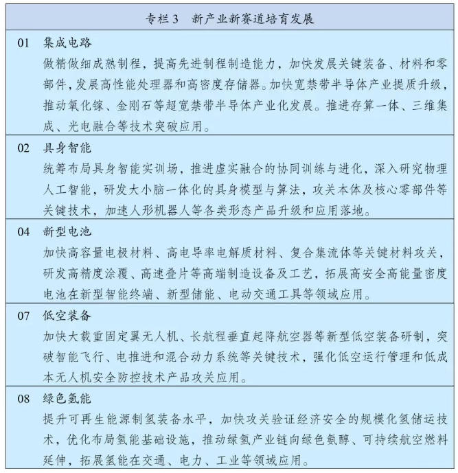 《綱要》提出,要前瞻布局未來產(chǎn)業(yè),瞄準(zhǔn)引領(lǐng)未來發(fā)展重點(diǎn)領(lǐng)域,構(gòu)建未來產(chǎn)業(yè)全鏈條培育體系,推動(dòng)量子科技、生物制造、氫能和核聚變能、腦機(jī)接口、具身智能、第六代移動(dòng)通信等成為新的經(jīng)濟(jì)增長點(diǎn)。加強(qiáng)未來產(chǎn)業(yè)識(shí)別和動(dòng)態(tài)調(diào)整,強(qiáng)化基礎(chǔ)性、前沿性、顛覆性技術(shù)布局。