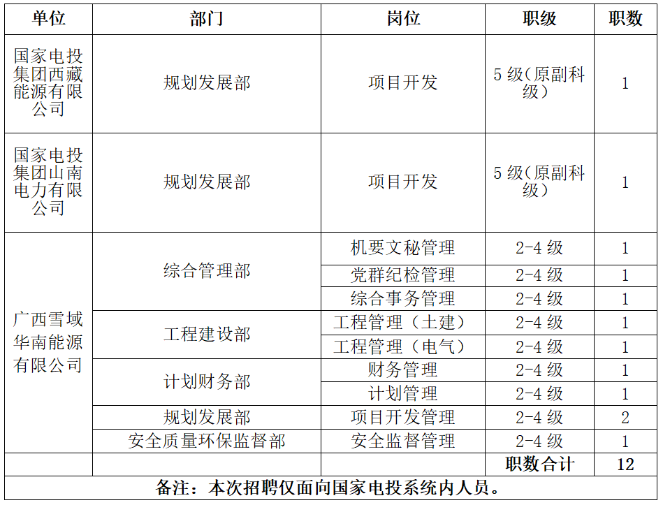 本次招聘僅面向國家電投系統(tǒng)內人員。