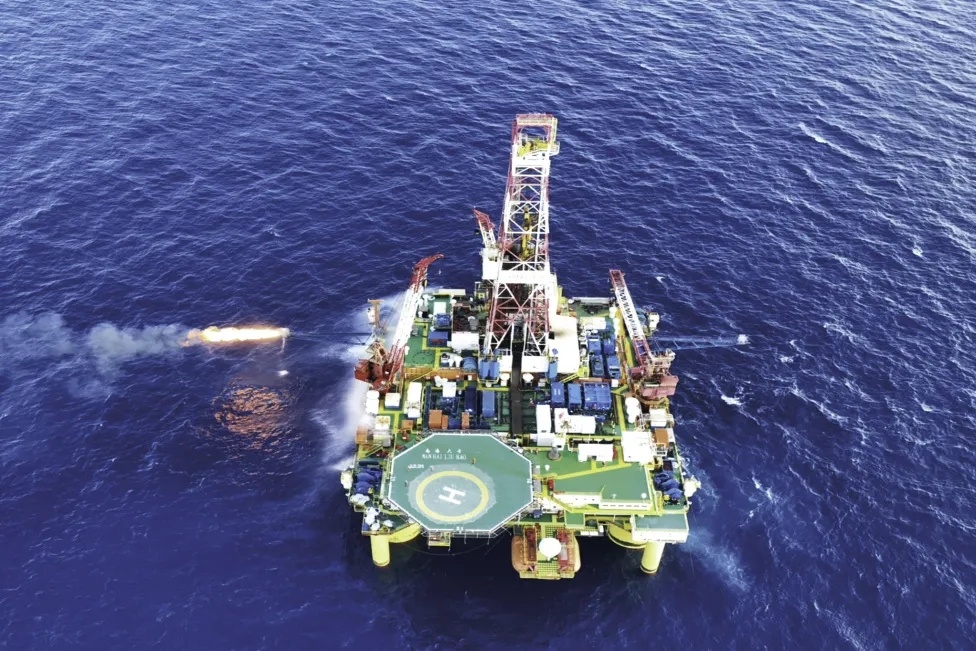 “深藍(lán)探索”號(hào)鉆井平臺(tái)在開平南油田進(jìn)行鉆探作業(yè)