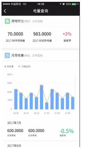 售電公司可在網(wǎng)上營業(yè)廳查詢客戶每月實際用電情況,安裝有計量采集系統(tǒng)的客戶還可以查看到每15分鐘一條的實際用電曲線,方便客戶了解自身用電情況,合理安排用電計劃,節(jié)省電費開銷。