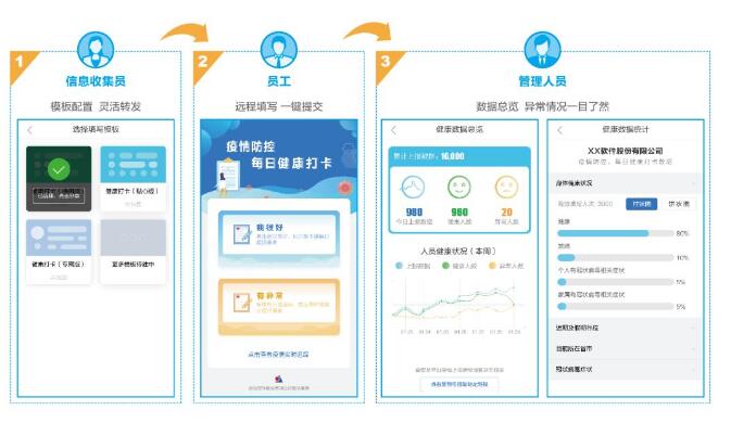 員工健康打卡 筑牢辦公安全防線 員工健康打卡系統(tǒng)是遠光軟件在疫情發(fā)生后,第一時間組建團隊、抓緊研發(fā)的一款采集員工健康信息及異常情況的產品。該系統(tǒng)已于2月2日上線,免費提供給各機關、企業(yè)、社會組織使用。截至目前,已有800多家企業(yè)注冊并使用該系統(tǒng)。