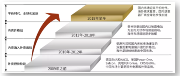 回顧逆變器的發(fā)展歷史,2003年陽光電源推出中國首臺擁有自主知識產權的逆變器。2012年全球出貨量前十中只有陽光電源一家中國企業(yè)。2015年以來,華為、陽光電源和SMA的出貨量前三地位穩(wěn)定,而行業(yè)腰部企業(yè)市場份額接近,競爭更為激烈。在激烈的角逐中,中國逆變器企業(yè)逐漸崛起。如今,陽光電源、華為等品牌逆變器穩(wěn)扎穩(wěn)打,在國際站穩(wěn)腳跟。歷經激烈競爭、行業(yè)迭代,我國逆變器企業(yè)實現(xiàn)從無到有、從有到強的強勢蛻變。