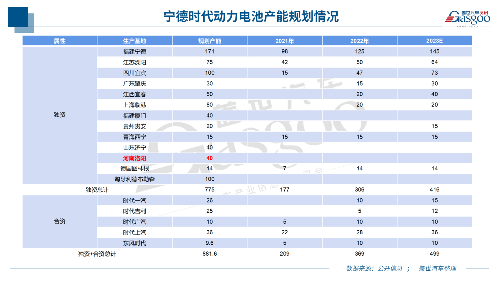此外,寧德時代還與各大主機廠合資工廠規(guī)劃產(chǎn)能合計超100GWh。