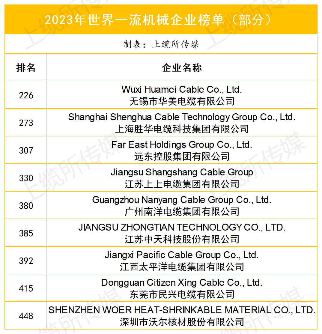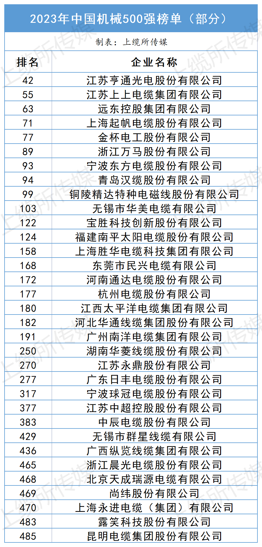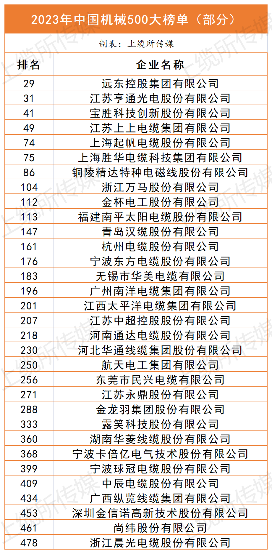 中國機械500強、500大榜單中的線纜企業(yè)!