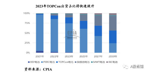 由于TOPCon電池經(jīng)濟性更強,一體化組件龍頭企業(yè)及專業(yè)化電池企業(yè)紛紛快速擴產(chǎn),并有望于2023年實現(xiàn)出貨量快速增長。據(jù)CPIA預測,2023年TOPCon出貨占比將實現(xiàn)翻倍增長。預計2023年全行業(yè)TOPCon電池組件出貨將達到100-150GW。