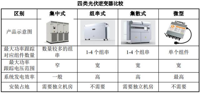 根據(jù)不同功率,光伏逆變器可分為集中式逆變器、組串式逆變器、集散式逆變器及微型逆變器,主要區(qū)別在于逆變器單體容量以及直接與其連接的光伏組件數(shù)量的不同,同時(shí)也具有不同的下游應(yīng)用場景。集中式逆變器是將并行的光伏組串連接到同一臺(tái)集中逆變器的直流輸入端,進(jìn)行最大功率峰值跟蹤后,經(jīng)過逆變并入電網(wǎng)。集中式光伏逆變器的單體容量通常在 500kW 以上,主要適用于光照均勻的集中性地面大型廠房、電站等;組串式光伏逆變器是對(duì) 1-4 組光伏組串進(jìn)