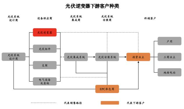 逆變器下游涵蓋終端用戶、系統(tǒng)集成商、EPC 承包商(Engineer i ngProcurement Construction,指公司受業(yè)主委托,按照合同約定對(duì)工程建設(shè)項(xiàng)目的設(shè)計(jì)、采購、施工、試運(yùn)行等實(shí)行全過程或若干階段的承包)和安裝商。從逆變器產(chǎn)業(yè)鏈的下游來看,逆變器作為太陽能光伏發(fā)電系統(tǒng)的核心部件,需與其他部件集成后銷售給下游電站投資業(yè)主、家庭戶用、工商業(yè)主等終端用戶。光伏發(fā)電系統(tǒng)在提供給最終用戶使用之前,還需經(jīng)歷系統(tǒng)設(shè)計(jì)、部件集成及安裝環(huán)節(jié),雖終端用戶均相同,但設(shè)備也可以由中間環(huán)節(jié)的某一類客戶采購,故逆變器下游客戶既包括了投資業(yè)主等最終用戶,也涵蓋了光伏系統(tǒng)集成商、EPC 承包商、安裝商等中間環(huán)節(jié)的客戶。