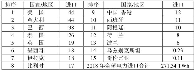 2018年全球電力進(jìn)口國的貿(mào)易量(單位:TWh)