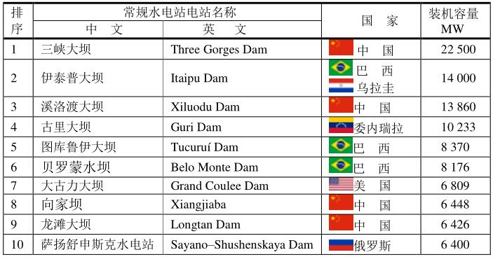 中國湖北省的三峽水電站仍然是世界上最大的水電站,總裝機(jī)容量為22.50 GW;位于巴西和巴拉圭的伊泰普水電站是世界第二大水電站,裝機(jī)容量為14.00 GW。不過,伊泰普水電站所處的巴拉那河水量豐沛且季節(jié)分布相對(duì)均衡,幾乎可以全年滿負(fù)荷發(fā)電;而三峽水電站則每年都會(huì)經(jīng)歷約6個(gè)月的枯水期,從而限制了其發(fā)電量。
