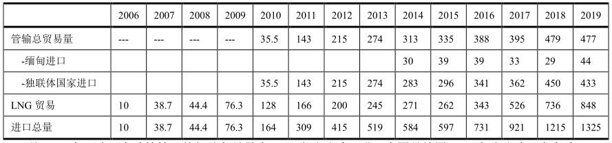 中國管輸進(jìn)口量(單位:億立方米)