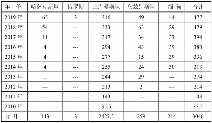 世界上天然氣儲(chǔ)量最多的國家是俄羅斯,土庫曼斯坦居世界第四位。中國管輸天然氣進(jìn)口依靠資源豐富的俄羅斯和中亞國家,最早的最重要的出口國是土庫曼斯坦,于2010年開始出口,到2019年總量已經(jīng)達(dá)到2427.5億立方米;其次是烏茲別斯坦、緬甸和哈薩克斯坦。俄羅斯從2019年也開始出口到中國,而且將會(huì)逐年增加,成為管輸出口到中國最多的國家。