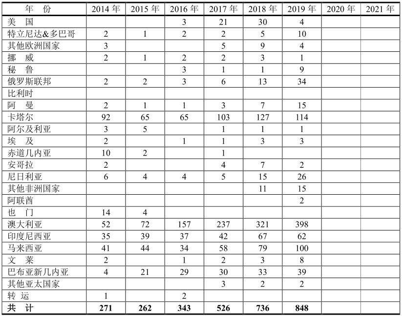 向中國銷售LNG約20個(gè)國家,但是主要的有卡塔爾、澳大利亞、印度尼西亞和馬來西亞等,這四個(gè)國家都是按照長期合同執(zhí)行的,即按“照付不議”付款形式。其他的國家多數(shù)按照短期合同執(zhí)行。