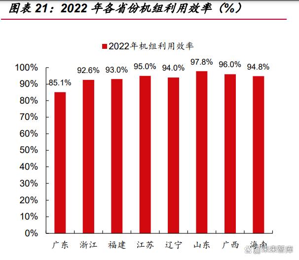 我國在運、在建核電項目均處于沿海發(fā)達(dá)省份。我國在運、在建、核準(zhǔn)核電機組 分布在東部沿海 24 座核電站,其中漳州、惠州、霞浦、三澳、徐大堡等 5 個核電站 為新建核電站,尚沒有在運核電機組。我國核電站分布在東部沿海 8個省份,自北向 南分別是遼寧、山東、江蘇、浙江、福建、廣東、廣西、海南。 我國核電機組利用效率均處于較高水平。2022 年我國核電項目平均利用率達(dá) 91.69%,除廣東外我國其他省份核電利用率均高于 90%,主要由于臺山核電廠 1 號 機組于 2021 年 7 月 31 日開始臨停大修,直到 2022 年 8 月 15 日才并網(wǎng)成功。我國 在運、在建核電項目有望維持高利用效率,基本上無需擔(dān)心消納問題。