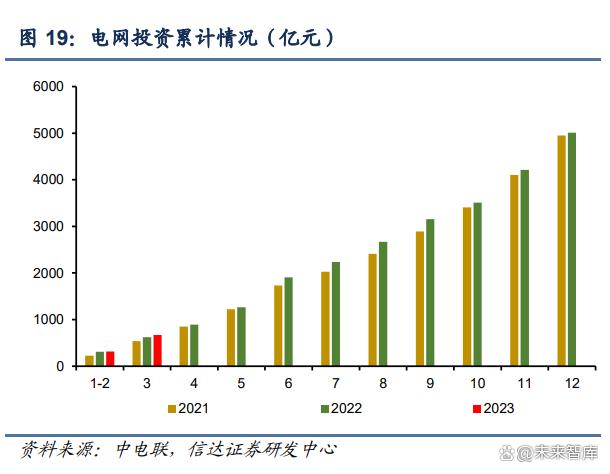 電網(wǎng)投資情況方面:1-3 月電網(wǎng)工程完成投資 668 億元,同比增長(zhǎng) 7.5%。2022 年電網(wǎng)工程 審批及建設(shè)受疫情影響,開(kāi)工及完成不及預(yù)期。2023 年開(kāi)年電網(wǎng)投資開(kāi)始發(fā)力,有望在今 年保持同比高增速。