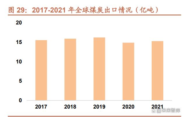 地緣政治局勢變化影響能源市場,全球動(dòng)力煤價(jià)格高企抬升中國動(dòng)力煤進(jìn)口成本。受疫情影響,2020 年以來全球煤 炭出口數(shù)量持續(xù)下降,2020 年全球煤炭出口總量為 14.86 億噸,較 2019 年下降 8.3%,2021 年回升至 15.27 億噸, 但仍低于 2019 年水平。而地緣政治局勢的惡化則進(jìn)一步影響了煤炭市場,2022 年動(dòng)力煤供應(yīng)進(jìn)一步惡化。2022 年 1 月,印尼政府為緩解國內(nèi)電廠缺煤形勢宣布 1 月內(nèi)禁止出口煤炭,引發(fā)國際煤炭市場震蕩,海運(yùn)煤市場供給大幅減 少,煤價(jià)開啟上行之路。2022 年 2 月,俄烏沖突爆發(fā),美國與歐盟對(duì)俄羅斯實(shí)行能源禁運(yùn),俄羅斯 3 月以來煤炭、 石油、天然氣出口量均大幅下降,煤炭出口的下降直接沖擊了全球動(dòng)力煤市場,而天然氣出口的下降使得歐洲出現(xiàn)較 大程度的能源短缺,歐洲多國被迫重拾其他替代能源,煤電也包括在內(nèi),根據(jù)國際能源署的統(tǒng)計(jì),2022 年歐洲燃煤 發(fā)電量同比增長 6%,歐洲能源結(jié)構(gòu)的變化加劇了全球煤炭供給的短缺。2022 年中國的動(dòng)力煤進(jìn)口成本飆升。