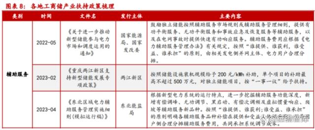 多形式扶持政策結(jié)合,鼓勵(lì)工商業(yè)儲(chǔ)能發(fā)展。為加快工商儲(chǔ)的滲透率,盡早實(shí)現(xiàn)商業(yè)化,國家和省市層 面均出臺(tái)了輔助服務(wù)、補(bǔ)貼、隔墻售電政策,為運(yùn)營商創(chuàng)造多層次的盈利渠道。輔助服務(wù)方面,我國電 力輔助服務(wù)市場中交易品種包括調(diào)峰、調(diào)頻、無功調(diào)節(jié)、備用和黑啟動(dòng)等,近年來儲(chǔ)能和可調(diào)節(jié)負(fù)荷也 納入了提供輔助服務(wù)的市場主體之中;補(bǔ)貼方面,如今年 4 月東北監(jiān)管局連發(fā)兩文明確新型儲(chǔ)能各類補(bǔ) 償:針對新型儲(chǔ)能,如果 AGC 可用率達(dá)到 98%以上,按 AGC 可用時(shí)間每臺(tái)次(電站)補(bǔ)償 20 元/時(shí); 隔墻售電方面,浙江省于 2023 年 1 月 1 日起實(shí)施最新電力條例:分布式發(fā)電企業(yè)可以與周邊用戶按照 規(guī)定直接交易。